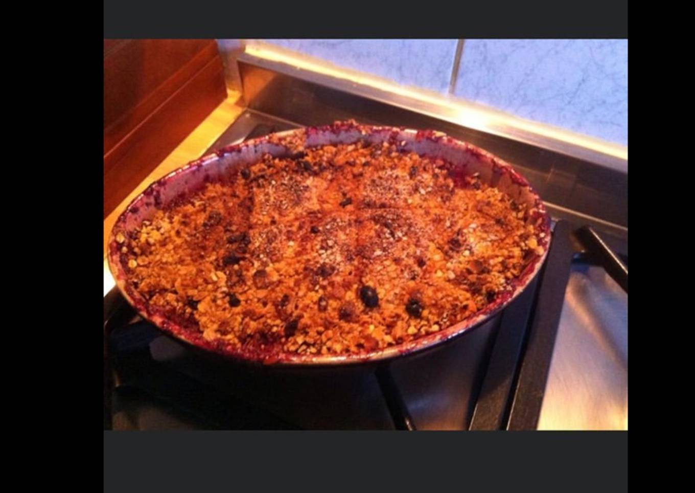 - Mettre les fruits avec leur jus dans un plat à gratin recouvrir de la pâte à crumble enfourner pour 30 minutes baisser le thermostat à 180 degrés après 10 minutes de cuisson laisser refroidir à la sortie du four c est prêt ! Servir dans le plat de cuisson bon appétit 😋