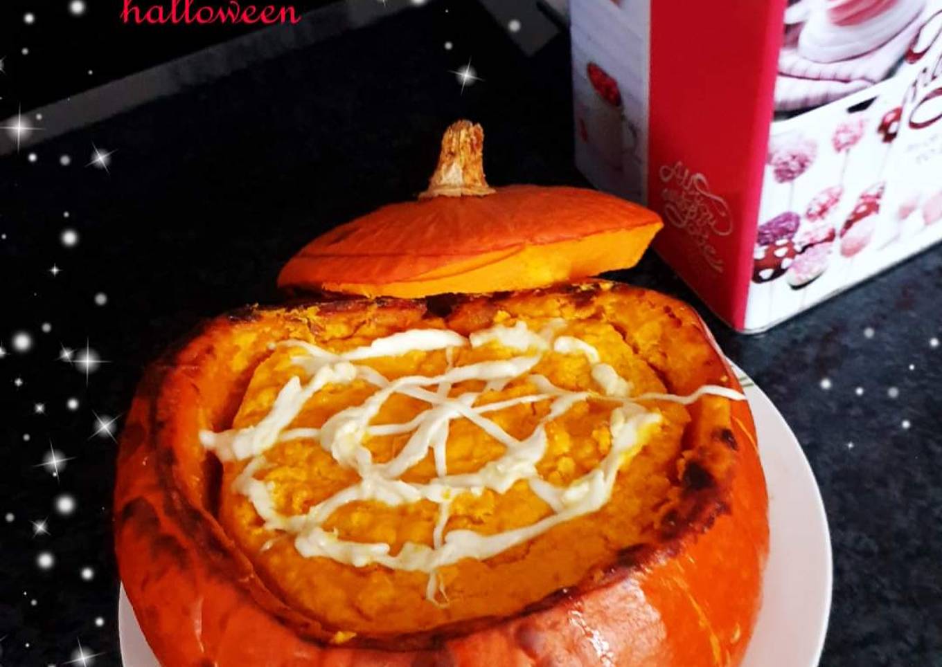 Just in addition, the time it takes to cook Flan potiron d'halloween 😱 # halloween estimated approx 30+45 min.