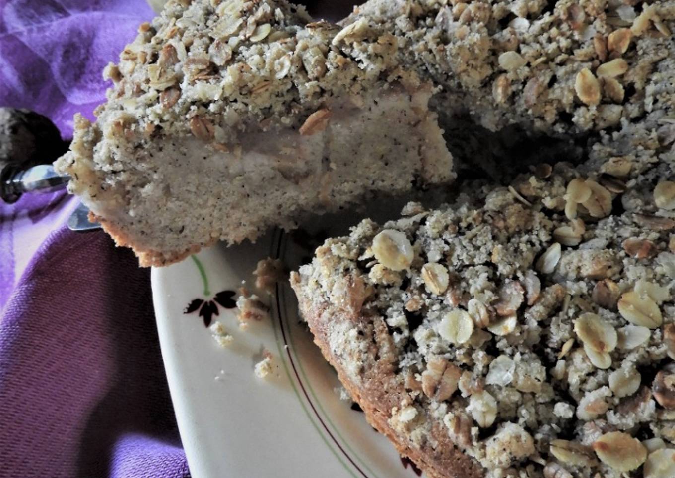 Ce financier agrémenté de poires et de noix, surmonté d’un crumble de flocons d’avoine, ne présente aucune difficulté pour être réalisé mais donne un dessert goûteux qui ne peut qu’être apprécié par tout le monde comme cela a été le cas chez nous, sans aucune culpabilité.