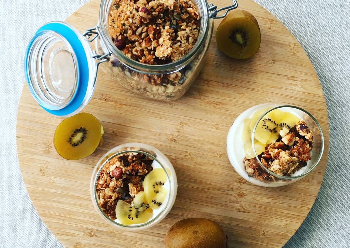Hey everyone, it is Drew, welcome to our recipe page. Today, we're going to make a distinctive dish, Verrines kiwi granola. One of my favorites food recipes. This time, I will make it a bit tasty. This will be really delicious.