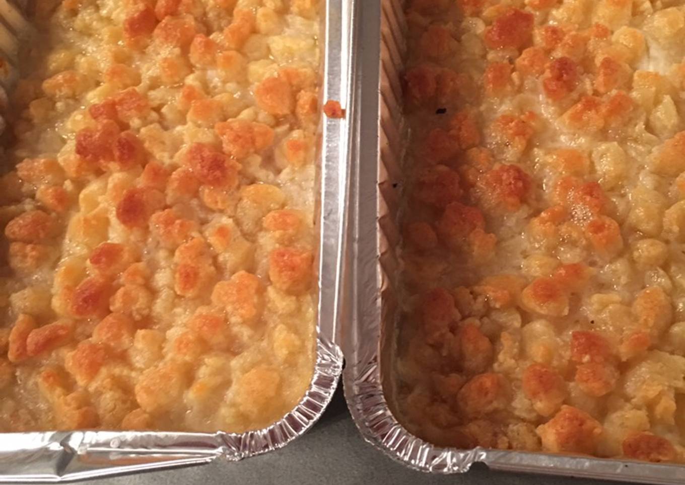 - L’écraser dans un plat avec la crème les allumettes de jambon sel/ poivre