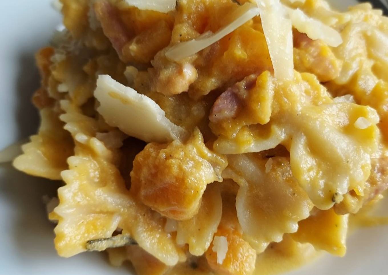 Les pâtes crème de butternut /ricotta lardons